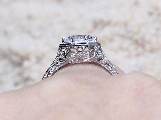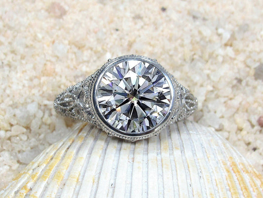 Moissanite Engagement Ring, Antique, Milgrain, Vintage, Filigree, 3.6ct, 10mm, Aegle, Promise Ring, Gift For Her