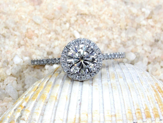 Moissanite Engagement Ring, Round Moissanite Diamonds Halo Ring, Pricus, 1ct Round Ring, White-Yellow-Rose Gold-10k-14k-18k-Platinum, 6mm