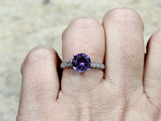 Vintage Alexandrite Sapphire Diamonds Engagement Ring Bezel Milgrain Smooth Round Ferarelle 2ct 8mm Custom Wht-Yellow-Rose Gold-14k-18k-Plat