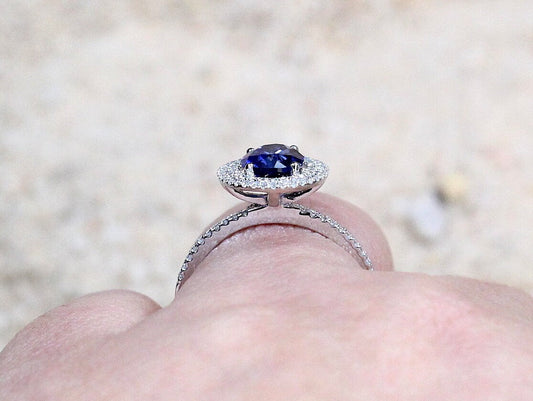 Blue Sapphire Engagement Ring, Diamonds Oval Halo, Ovale, 1ct, 7x5mm, Promise Ring, Gift For Her, Sapphire ring