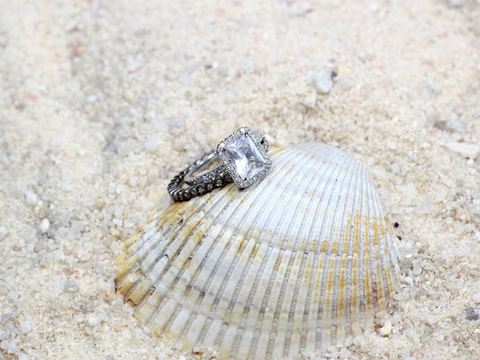 2ct Hemera 8x6mm Blue Sapphire Emerald Cut & Diamond Halo Engagement Ring