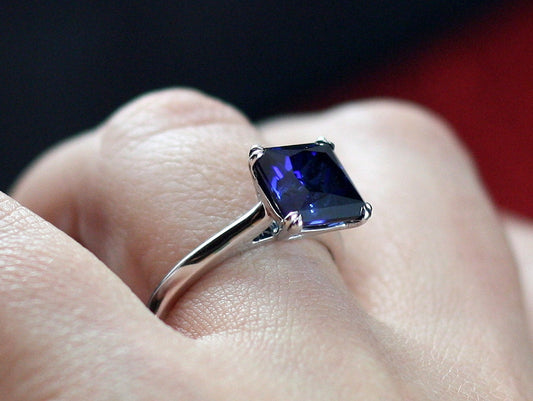 Blue Sapphire Engagement Ring,Sapphire Ring, Blue Sapphire Ring,Princess Cut Ring,Solitaire Ring,Phoebe,3.5- 4 ct Ring,White Gold Ring