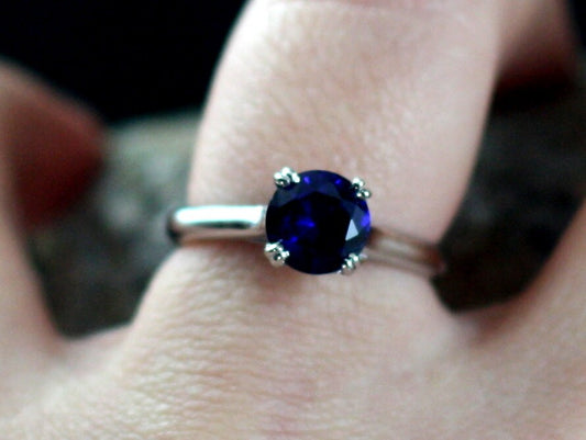 Blue Sapphire Engagement Ring Solitaire Round cut Cathedral 4 Double prong Caerus 1.5ct 7mm Custom White-Yellow-Rose Gold-14k-18k-Platinum
