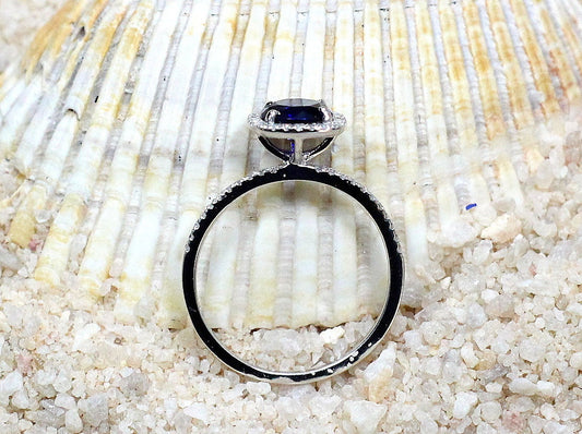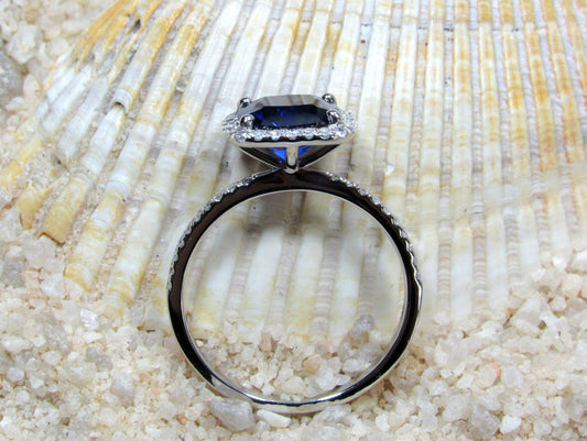 Blue Sapphire Engagement Ring, Cushion Halo Ring, Sapphire Engagement Ring, Blue Sapphire Ring, Cuscino, 2ct Ring 8mm