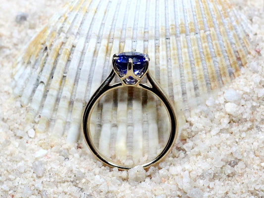 Blue Sapphire Engagement Ring,6 prong Ring,Dinlas,Solitaire Ring,Promise Ring,Sapphire Ring,White-Yellow-Rose Gold-10k-14k-18k-Platinum
