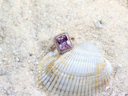 Blue Sapphire Engagement Ring, Emerald Double Halo, Belus, 4ct, 10x8mm, Promise Ring, Gift For her, Blue Sapphire Ring