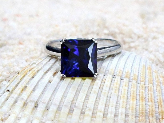Blue Sapphire Engagement Ring, Princess cut, Solitaire, Phoebe, 4ct, 9mm, Sapphire ring, Gift For Her, Promise Ring