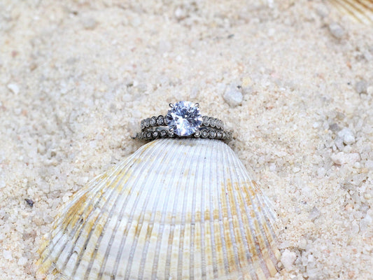 White Topaz Engagement Ring Set, Eternity Bezel, Wedding Band Set, Pistis, Ferarelle, 2ct, 8mm, Promise Ring, Gift For Her,Bridal Set