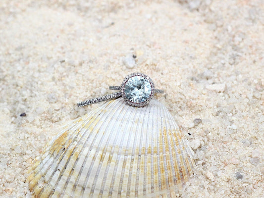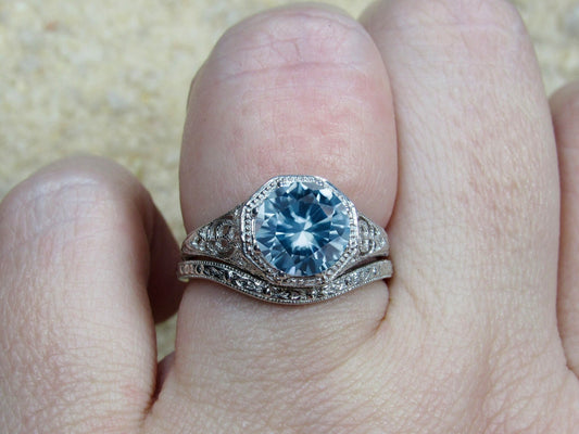 2ct Fides 8mm Light Blue Spinel Engagement Ring Set, Vintage, Antique, Filigree, Wedding Band Set