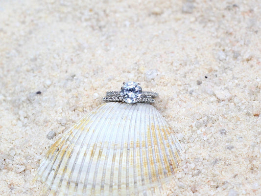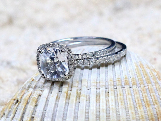White Sapphire Engagement Ring Set,Wedding Band Set,Diamond Band,Diamond Halo,Pricus,3ct 9mm Set,White Sapphire Ring,Sapphire Ring
