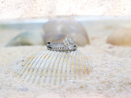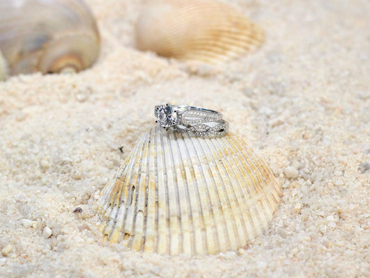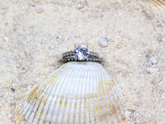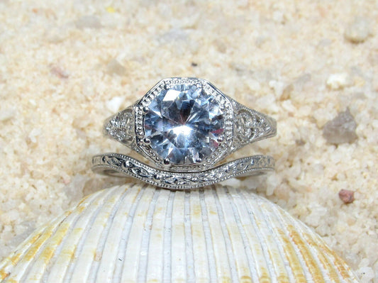 2ct Fides 8mm White Sapphire Engagement Ring Set, Vintage, Antique, Filigree, Wedding Band Set