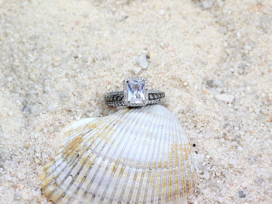 White Sapphire Engagement Ring Set, Aglaia, Half Infinity Wedding Band, 1ct, 6mm, Bridal Set, Promise Ring, Gift for Her