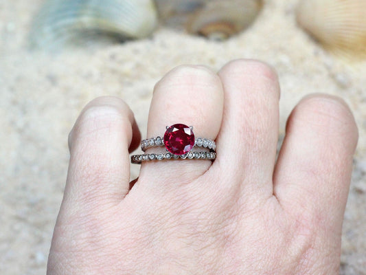 Ruby & Diamonds Engagement Ring wedding band Set round bezel Ferarelle 2ct 8mm Custom White-Yellow-Rose Gold-10k-14k-18k-Platinum