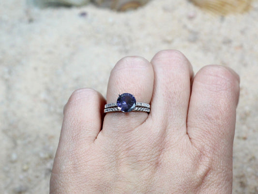 Color Change Sapphire Engagement Ring Set, Wedding Band Set, Pistis, 2ct, 8mm, promise ring, gift for her,gemstone ring