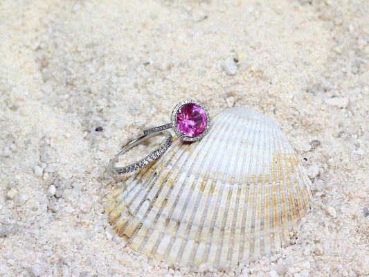 Pink Sapphire Engagement Ring Set,Halo Ring set,Wedding Band Set,Pricus,3ct 9mm,Pink Sapphire Ring Set,Wht,Yellow-Rose Gold-10k-14k-18k-Plt