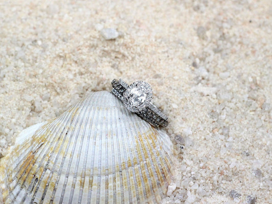 1.5ct Ovale Aeolus 8x6mm White Sapphire and Diamond Eternity Bezel Wedding Set Rings