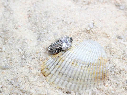 White Sapphire Engagement Ring Set,Antique Ring Set,Filigree Ring Set,Polymnia,2ct Ring Set,Sapphire Ring Set,White Sapphire Ring Set