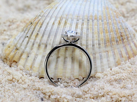 1ct Lab Created Diamond Ring, Lab Grown Diamond Oval Halo Engagement Ring, Petite Basket, 7x5mm Lab Diamond, Ovale