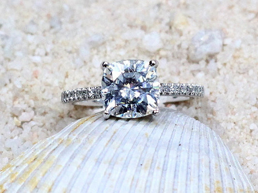 2.5ct Lab Grown Diamond Engagement Ring, Cushion Cut Lab Diamond Ring, 8mm Lab Created Diamond, Theia