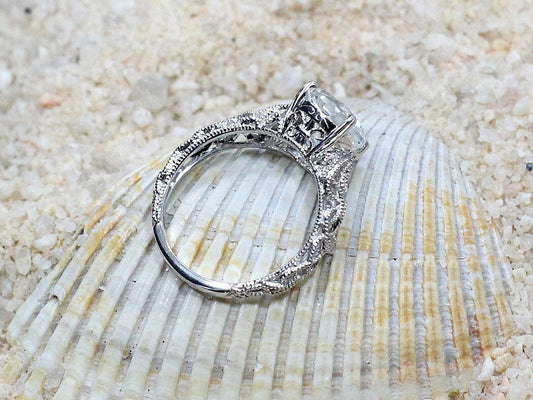 Forever One Moissanite Engagement Ring, Vintage, Antique, Filigree, Kassandra