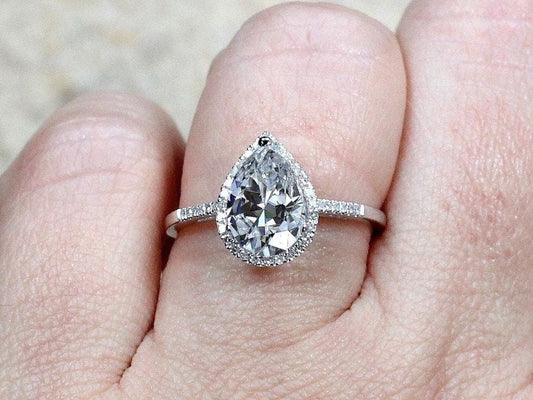 2ct Lab Created Diamond Engagement Ring, Lab Grown Diamond Pear Cut Halo, 10x7mm Lab Diamond, Goccia