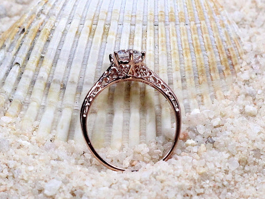 1ct Lab Diamond Engagement Ring, 6mm Lab Grown Diamond Ring, Antique Rings, Filigree Ring, Rhemba