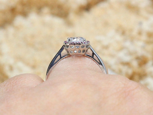 1ct Lab Diamond Engagement Ring, Ruby Cushion Halo, Lab Grown Diamond Ring, Lab Created Diamond Ring, Doris