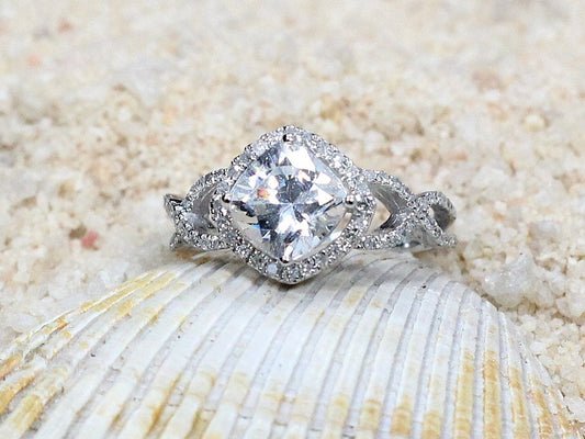 2ct Lab Grown Diamond, Lab Created Diamond Cushion Halo Ring, Lab Diamond Engagement Ring, Infinity Band, Notus