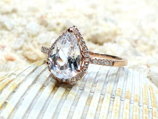 2ct Lab Grown Diamond Ring, Lab Diamond Pear Cut Halo, 10x7mm Lab Created Diamond, Gift For Her, Goccia