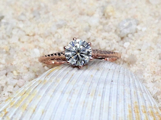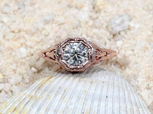 Vintage Moissanite Engagement Ring Antique Filigree Round Kassandra .50ct 5mm Custom White-Yellow-Rose Gold-10k-14k-18k-Platinum