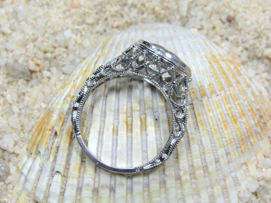 Grey Moissanite Engagement Ring, moissanite Diamond ring, Vintage ring, Antique Filigree ring, Polymnia,Promise Ring,Gift For Her
