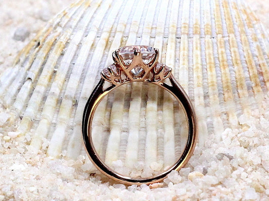 Moissanite Engagement Ring, 3 Gem Stone ring, Cupid , 2cts round ring, 8mm ring, White-Yellow-Rose Gold-10k-14k-18k-Platinum