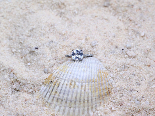 Moissanite Diamond Engagement Ring, Cushion Half Eternity ring, Pistis 2ct 8mm Custom White-Yellow-Rose Gold-10k-14k-18k-Platinum