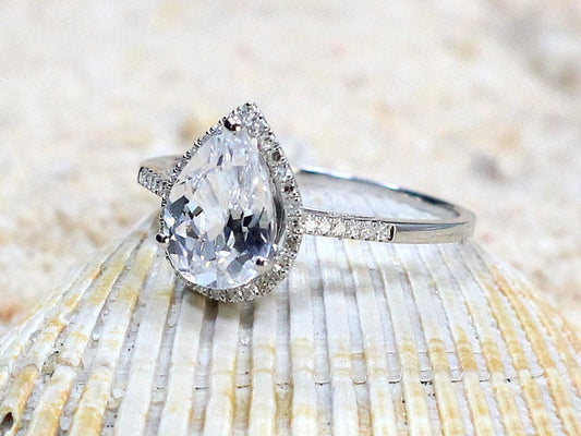 Moissanite Engagement Ring, moissanite Diamond Pear Halo ring, Helena 1ct 7x5mm Custom Size White-Yellow-Rose Gold-10k-14k-18k-Platinum