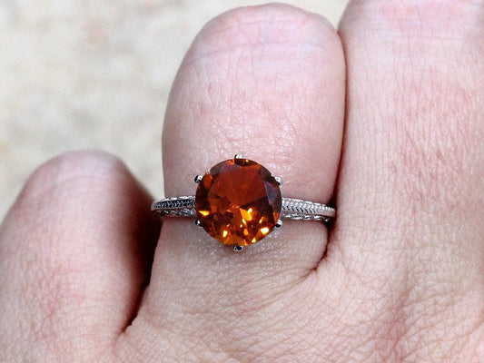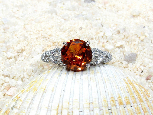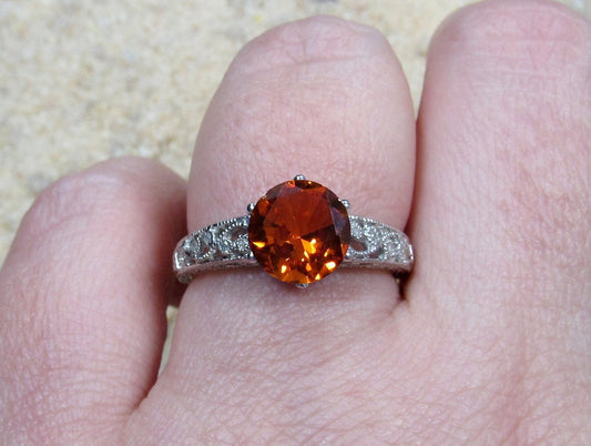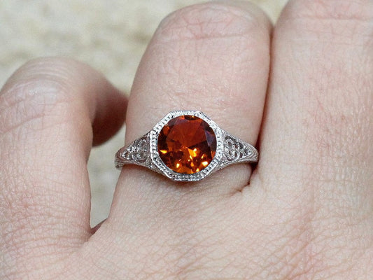 Orange Sapphire Engagement Ring,Orange Sapphire Ring,Vintage Ring,Antique Ring,Filigree Ring,Andromeda,2cts 8mm,Sapphire Ring