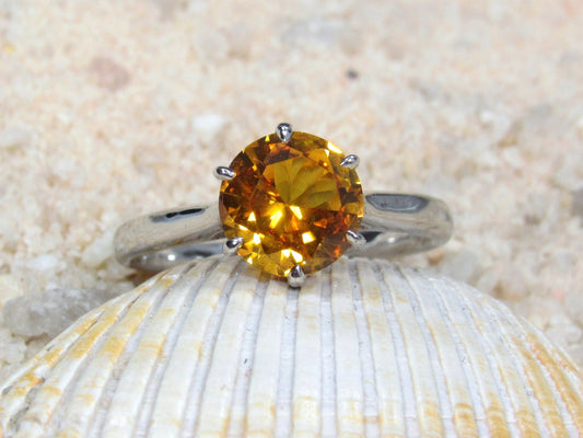 2ct Dinlas 8mm Padparadscha Sapphire Orange Solitaire Engagement Ring 6 prongs