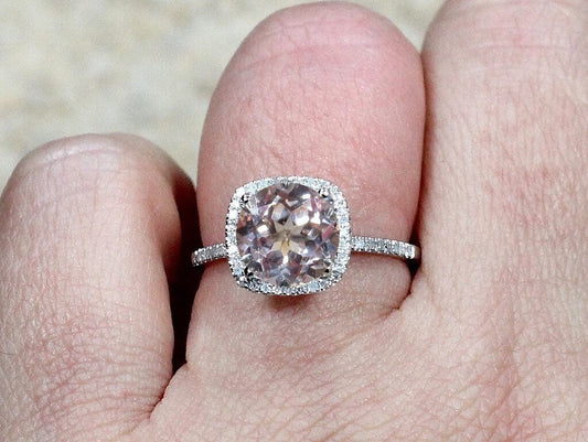 3ct Cuscino 8mm Peach Sapphire Cushion Halo Engagement Ring.