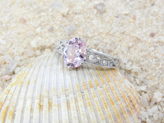 Peach Sapphire Oval Engagement Ring, Floral Ring, Sospita, 2ct Ring, White-Yellow-Rose Gold-10k-14k-18k-Platinum, 8x6mm Oval