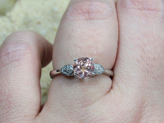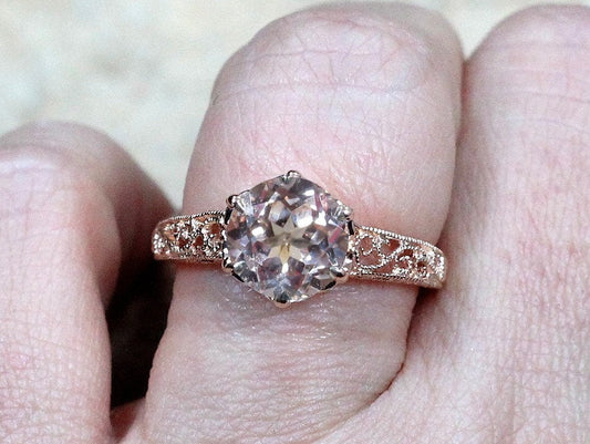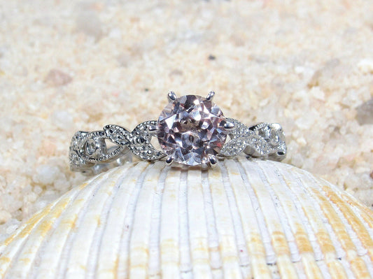 Peach Sapphire Engagement Ring,Antique Ring,Filigree Ring,Kassandra, .75ct 5mm,Sapphire Ring,White Sapphire Ring