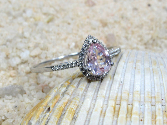 Peach Sapphire Engagement Ring, Diamonds Pear Halo, Goccia, 1ct, 7x5mm, Cathedral,Gift For Her,White-Yellow-Rose Gold-10k-14k-18k-Platinum