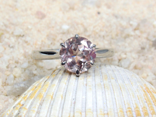 Peach Sapphire Engagement Ring,Dinlas,6 prong Ring,Solitaire Ring,White Sapphire Ring,Sapphire Ring,White-Yellow-Rose Gold-10k-14k-18k-Plt
