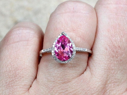 2.5ct Goccia 10x7mm Pink Sapphire Engagement Ring, Pear Cut