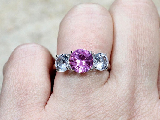 Pink & White Sapphire Engagement Ring,Jubilee,2ct Ring,White Sapphire Ring,Pink Sapphire Ring,White-Yellow-Rose Gold-10k-14k-18k