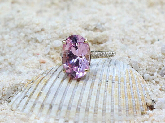 Soft Pink Sapphire & White Sapphire Engagement Ring Typhon Oval 9ct 15x10mm Custom Size White-Yellow-Rose Gold-10k-14k-18k-Platinum
