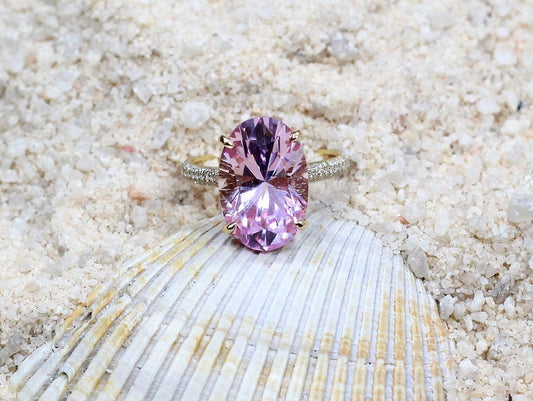 Light Ice Pink Sapphire & Diamonds Oval Engagement Ring Typhon 9ct 15x10mm Custom Size White-Yellow-Rose Gold-10k-14k-18k-Platinum