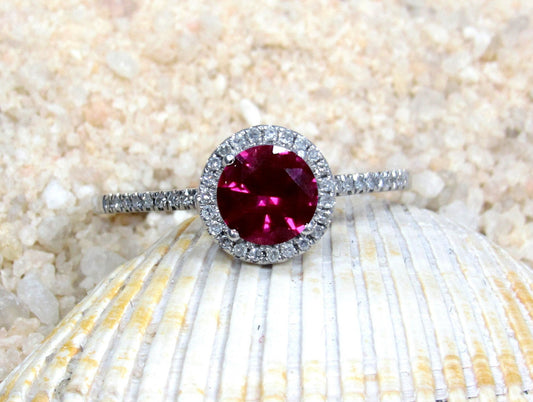Ruby & Diamonds Halo Engagement Ring Pricus,1ct Ring,Round Cut Ring,White Gold Ring,Yellow Gold Ring,Rose Gold Ring-14k-18k 6mm
