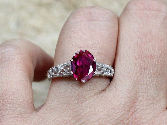 Ruby Engagement Ring, Antique Ring, Filigree Ring, Oval Red Polymnia 3ct 9x7mm, Red Ruby Ring, Ruby Ring, Filigree Engagement Ring
