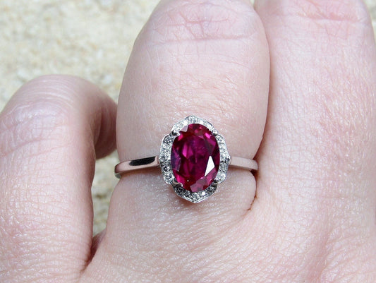 Ruby Oval Engagement Ring, Floral Ring, Sospita, 2ct Ring, White-Yellow-Rose Gold-10k-14k-18k-Platinum, 8x6mm Oval