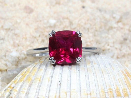 Ruby Ring,Cushion Cut Ring,Double Prong Ring,Solitaire Ring,Phoebe,3ct Ring,White-Yellow-Rose Gold-10k-14k-18k-Platinum,8mm