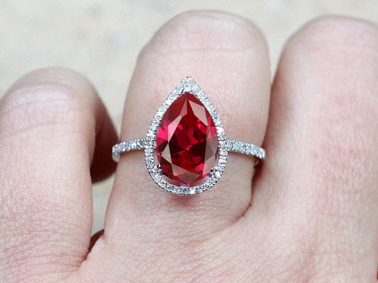 Ruby Ring,Diamond Pear Halo Ring,Ruby Engagement Ring,Helena, 4ct Ring,White-Yellow-Rose Gold-10k-14k-18k-Platinum